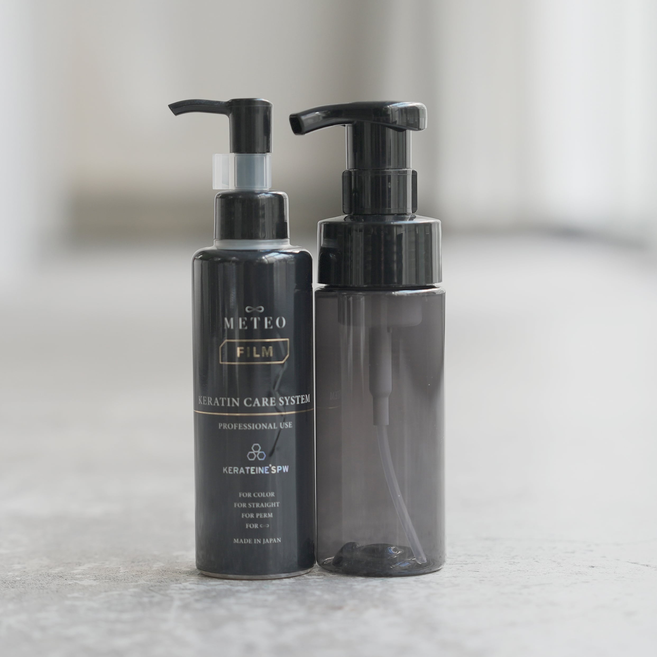 ケラチンは空気に触れると酸化してしまう「生もの」です。できる限り新鮮な状態でお客様の髪へ届けるため、外気を通さず、使うたびに内袋が縮んでいく特殊な二重構造(エアレス容器)を採用しました。